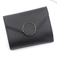 - Mały portfel damski w kolorze czarnym z metalowym kółkiem, elegancki design. Na zatrzask, praktyczny na banknoty i karty kredytowe.